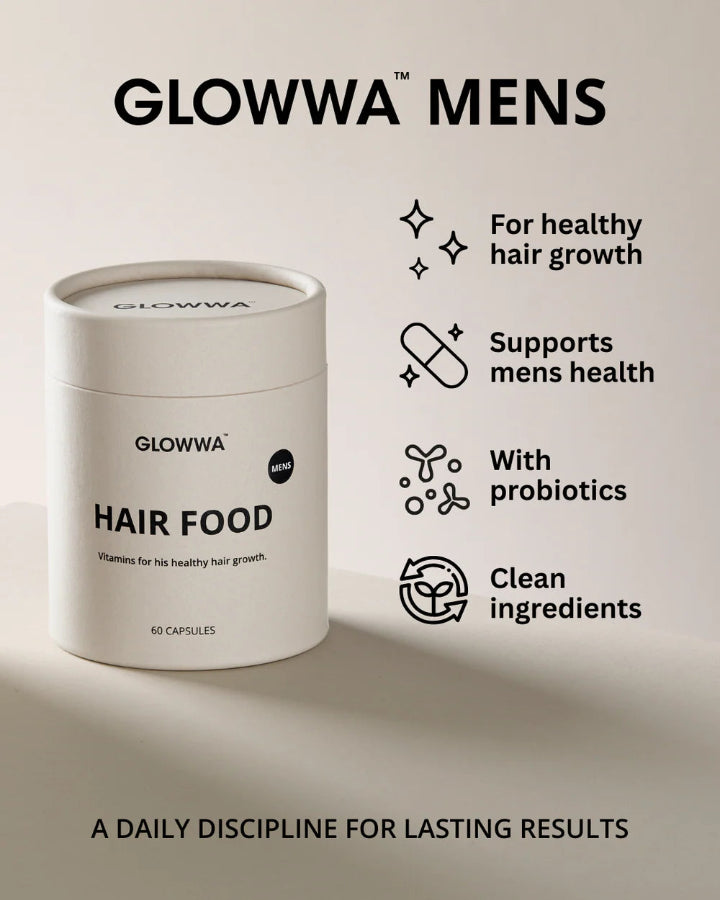GLOWWA Hair Food Mens Vitamins, 1 Month Supply 60 Capsules