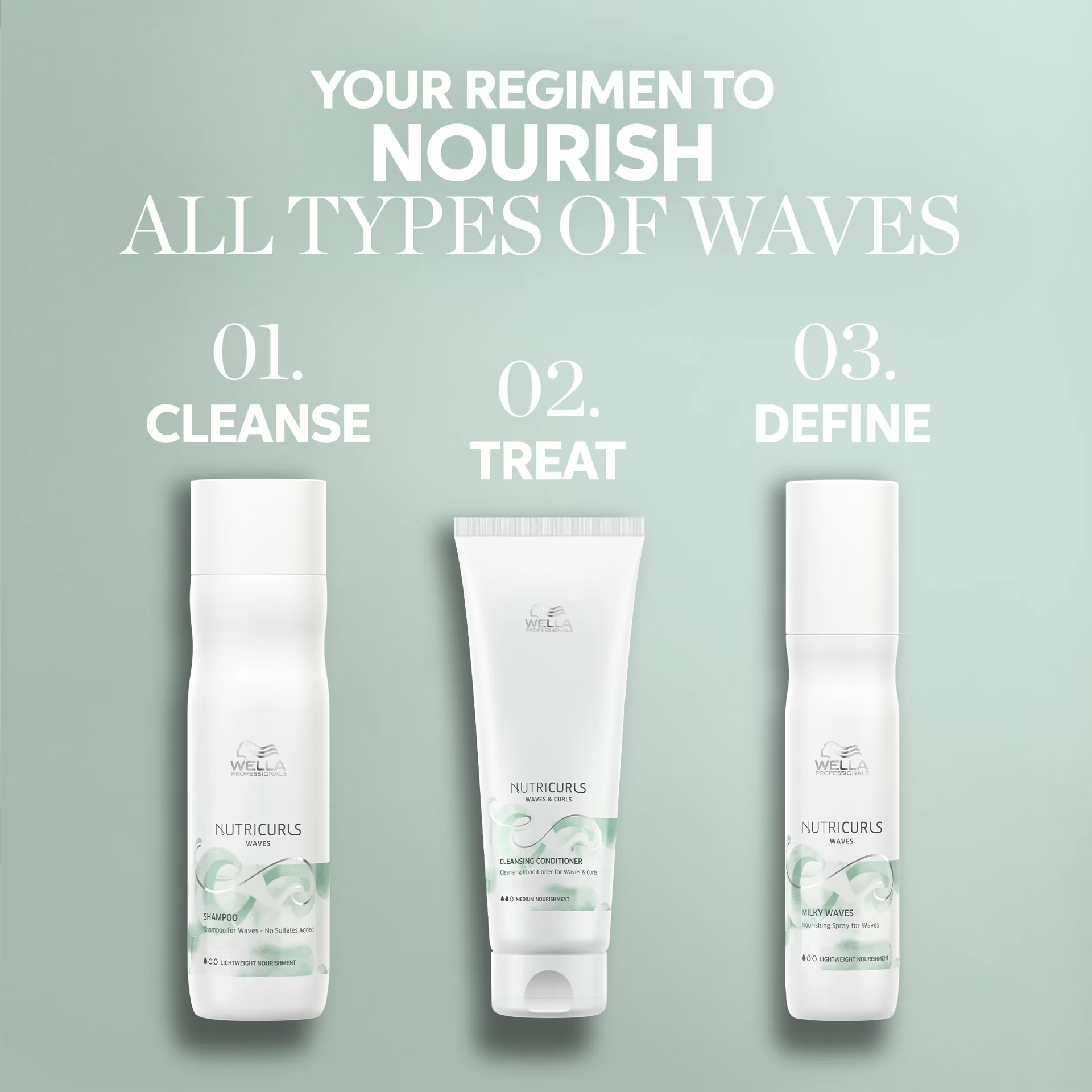 Define your waves with Wella Professionals Nutricurls Shampoo for Waves, designed with our Nourish-In Complex and anti-frizz properties to deliver lightweight nourishment to your hair.
